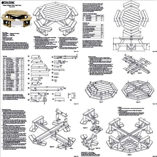 Traditional Octagon Picnic Table Set Woodworking Out Door Furniture Plans Pattern Odf06 Outdoor Furniture Woodworking Project Plans Amazon Com