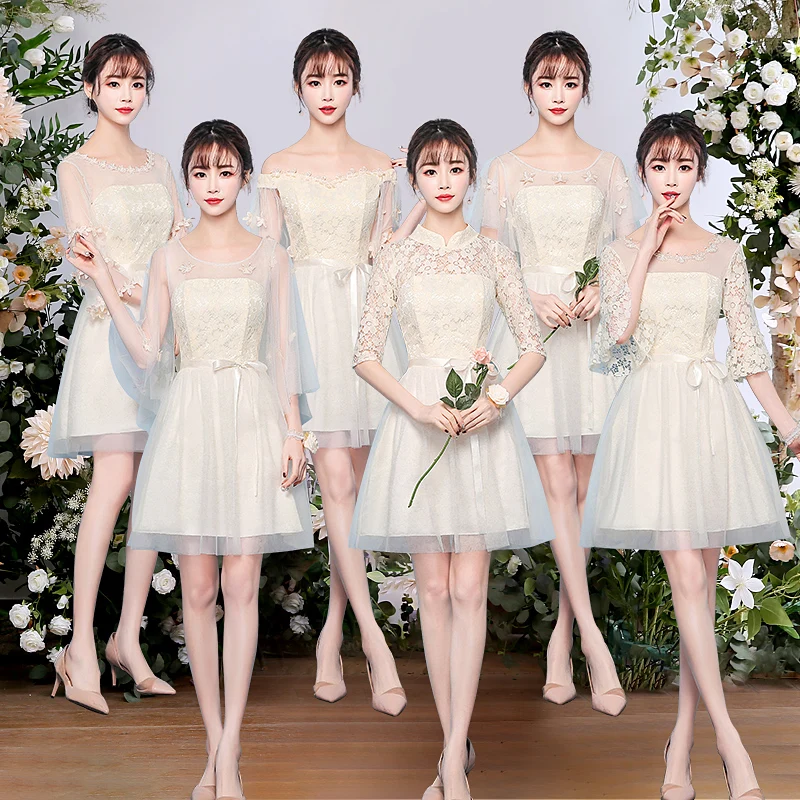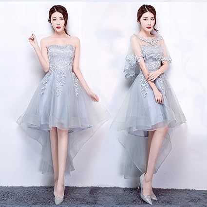 Hu Demoiselle D Honneur Moderne Bleu Gris Petite Robe Courte Robe De Dentelle Paragraphe Slim Robe De Demoiselle D Honneur Mariee A M Amazon Fr Cuisine Maison