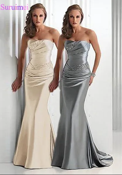 Robe De Demoiselle D Honneur Gris Argent Corset Amoureux A Lacets En Satin Champagne Longues Robe De Demoiselle D Honneur Aliexpress