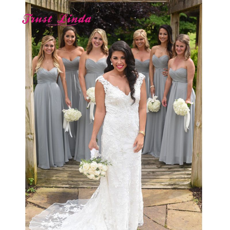 Acheter Robes De Demoiselle Dhonneur Longues Gris Formelle Etage Longueur Modest Mousseline De Soie Plage Robes De Demoiselles Dhonneur Robe De Mariee En V Profond Cou De 02 Du Dreamingbridal Dhgate Com