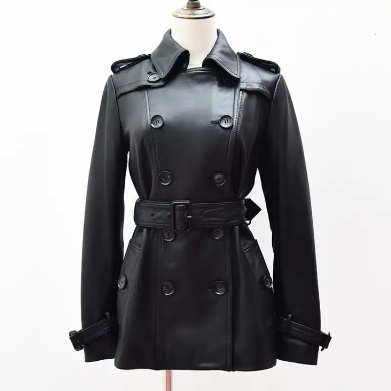Veste Cuir Automne Manteau Cuir Femme Peau De Mouton Noir Vetement Moto Ceinture Femme Fine Double Bouton Design Haut Aliexpress