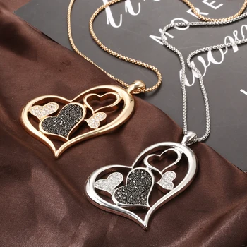 Or Argent Couleur Coeur Forme Pendentif Collier Femme Chaine De Chandail Retro En Cristal Blanc Noir Unique Colliers Longs Pour Femmes Bijoux Fantaisie Cadeaux Leather Bag