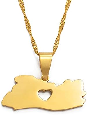 Vawaa El Salvador Carte Pendentif Collier Pour Femmes Hommes Or Couleur Bijoux Carte De El Salvador Colliers 45cm Fine Chaine Amazon Fr Bijoux