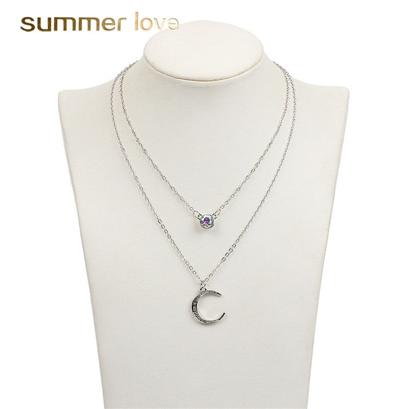 Acheter 19 New Rhinestone Crescent Moon Pendentif Collier Pour Femmes Filles Boheme Multicouche Argent Chaine En Or Collier Partie De Mode Bijoux De 1 Du Klfashion Dhgate Com