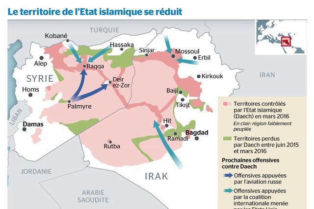 CARTE INTERACTIVE Depuis le début de l'année, Daesh perd du terrain en Syrie et en Irak, avec 16% de zones contrôlées en moins Certaines de ces pertes sont particulièrement critiques. Entre et combattants djihadistes venus de 86 pays auraient rejoint les rangs d'organisations en Syrie et en Irak depuis le début de la guerre syrienne en 11 Voic le point en cartes. La coalition internationale en Irak et en Syrie, aussi appelée coalition contre l'État islamique ou coalition antiEI, est formée en 14 lors de la Seconde Guerre civile irakienne et la guerre civile syrienne afin d'intervenir militairement contre l'État islamique et le Front alNosra en Irak et en SyrieElle intervient à partir d' août 14, et rassemble initialement vingtdeux pays.