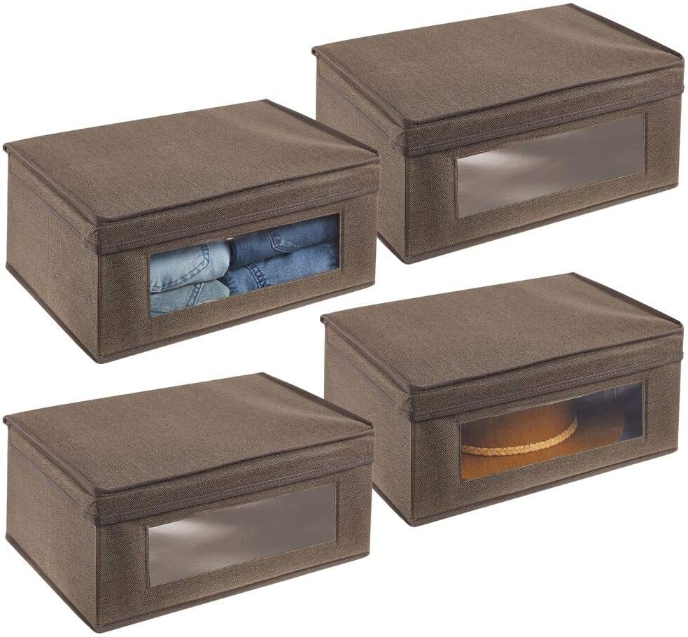 Couleur Creme Marron Panier De Rangement Rectangulaire Pour Ranger Les Vetements Dans La Chambre Mdesign Boite De Rangement Grand Bac De Rangement Avec Couvercle Et Hublot En Plastique Cuisine Maison Caisses De