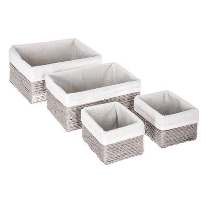 Panier en osier rectangulaire à motifs, Lot de 4Apportez une touche de décoration à votre intérieur grâce à ces paniers de rangement en osierXS L 28 x l 18 x H 13 cm, S L 34 x l 24 x H 15 cm, M L 38 x l 28 x H 17 cm, L L 43 x l 33 x H 19 cmCouleur GrisMatière Osier et polyesterRef couleur.