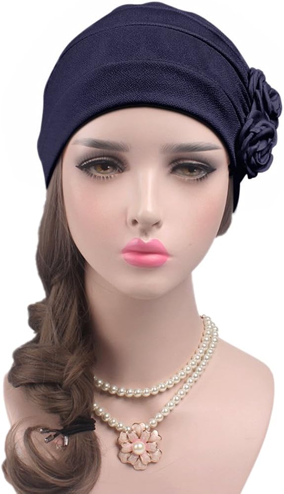 Yonkiny Turban Chimio Pour Femmes Elegant Et Elastique Headwear Coiffe Avec Fleur Turban Perte De Cheveux Cancer Accessoires Femme