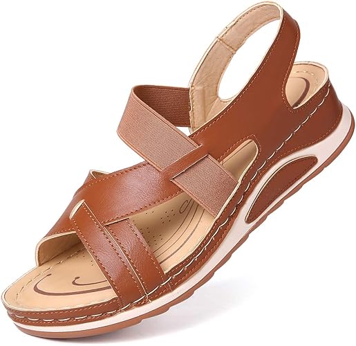 Camfosy Sandales Femmes Plates Cuir Chaussures Ete Compensee Plateforme Tongs Plage Sports D Ete Semelle Confort Talon Plat Enfiler Pour Pieds Larges Fort Amazon Fr Chaussures Et Sacs