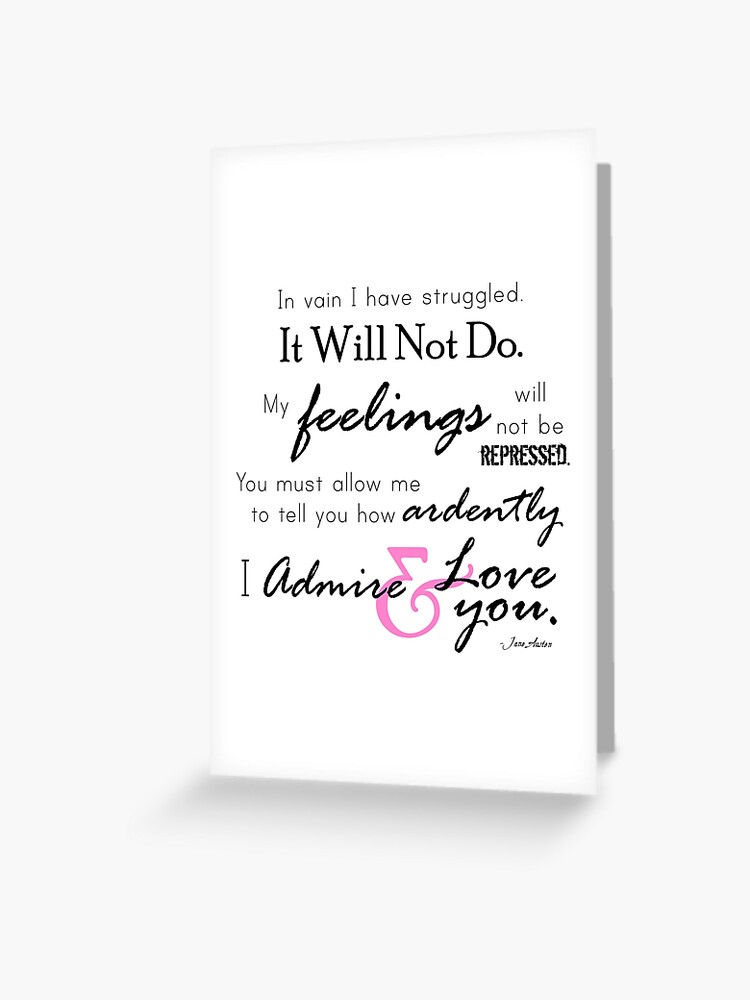 I Admire Love You Jane Austen Quote About Love And Romance From Pride And Prejudice Greeting Card By Behavebookishly Redbubble