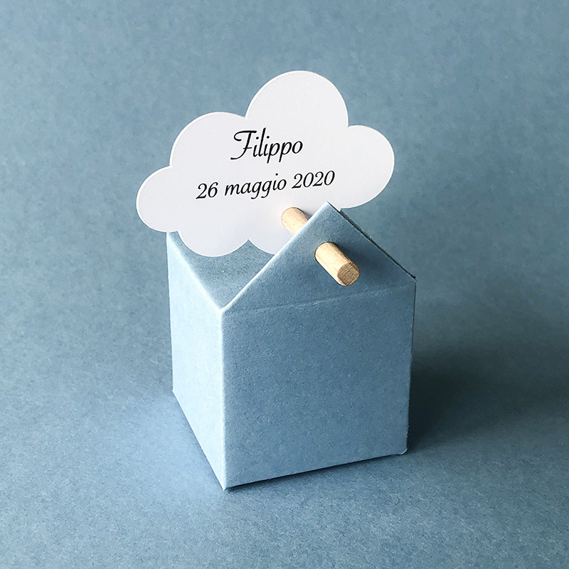 Boite Dragees Cube Duo Bleu Ciel Contenant Dragees Bapteme Ambiancedragees