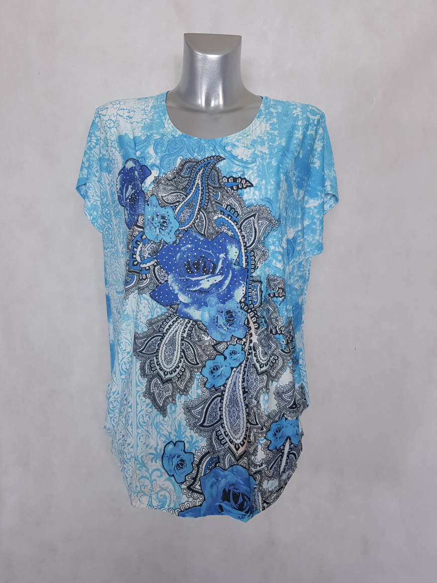 Tunique Femme Ronde Azur Fleurie Strass Aux Caprices De Madeleine