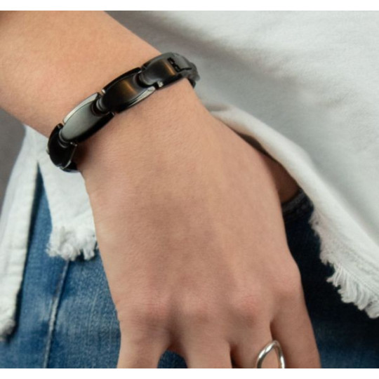Bracelet Magnetique Homme Avec Gravures Noir Par Talisa