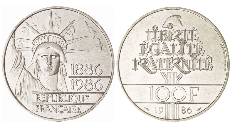 Piece De Monnaie 100 Francs Liberte Statue De La