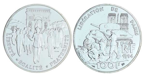 Piece 100 Francs Liberation De Paris 1994 Rakuten
