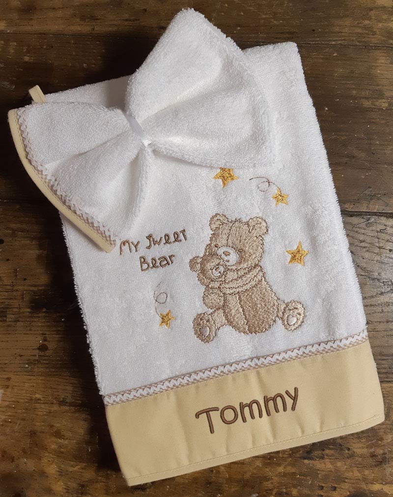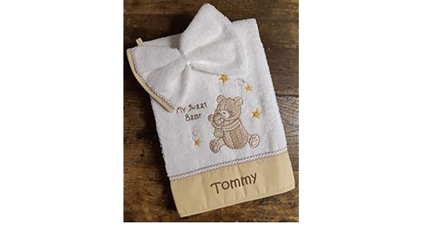 Garcon Fille 70x140cm Ensemble De Bain Serviette Et Gant Ourson Brode Et Personnalise Au Prenom De Bebe Bapteme Cadeau Naissance Maison Et Cuisine Produits Handmade
