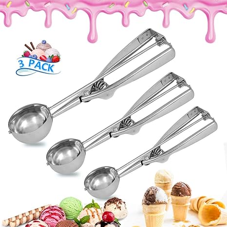 Iskm Ice Cream Scoop Cookie Scoop With Trigger 3 Pcs Melon Ball Baking Spoon 18 8 Stainless Steel Include Large 6cm Medium 5cm