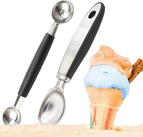 Amazon Com 2 Pcs Premium Ice Cream Scoop Stainless Steel Scooper With Double Size Melon Baller Melon Scoop Comfortable Easy Grip Handle Kitchen Dining