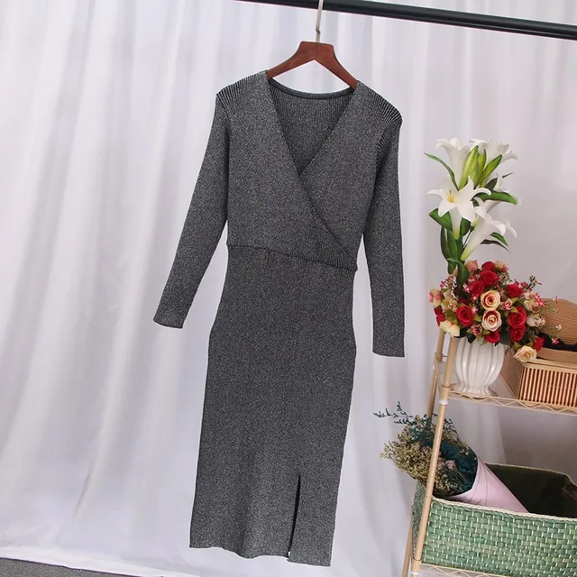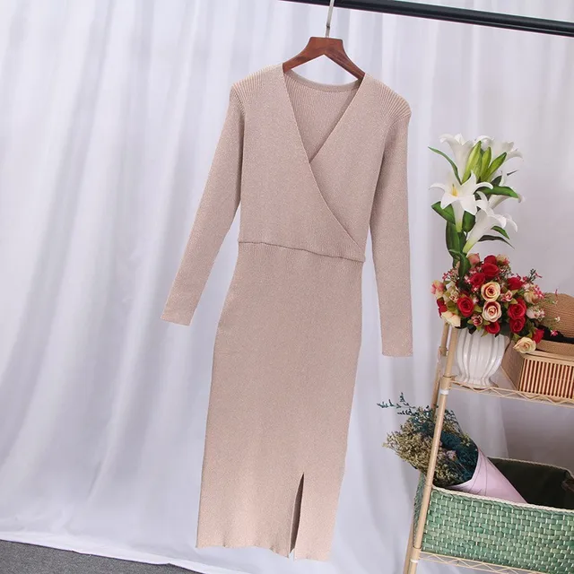Cotton Winter Dress Genou Longueur Tricote Automne Femmes Robe Lurex Paillettes Robe Pull Col En V Sexy Cotes Femme Pull Robes Dresses Aliexpress