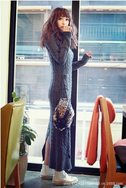 Winter 15 Women Long Ankle Length Pull Overs Cable Knitting Sweater Dress High Neck Pull Robe Longue Femme Dress College Dress Up Clothes Setdress Stretch Aliexpress