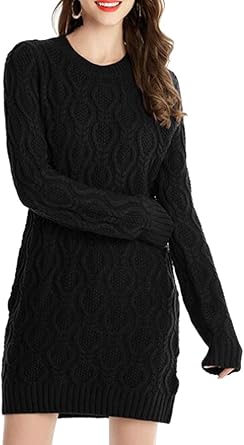Hluky Robe Pull Femme Manches Longues Robe Hiver En Tricot Elegant Femme Robe Pull Elegant Tricot Col Rond Mode Femme Grande Taille Hiver Mini Dress Chandail Robe Sweater Tunique Robes Sports Et