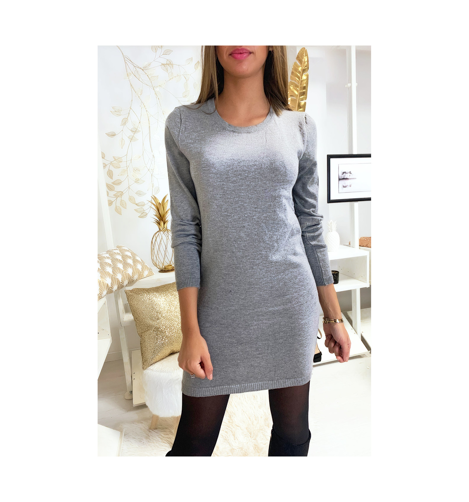 Pretty Gray Sweater Dress With Round Neck In Lycra Knit