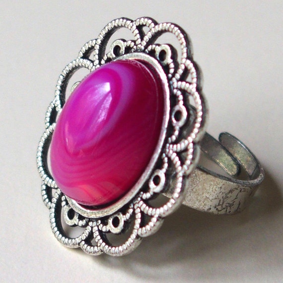 Bague Agate Rose Pierre Fine Semi Precieuse Agate Fuchsia Etsy