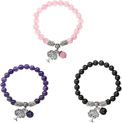 Jovivi Lot De 3pcs Bracelet En Pierre Amethyste Quartz Rose Agate Chakra Perles D Energie Pierre Precieuse Extensible Elastique Tibetain Bouddhiste Avec Pendentif Arbre De La Vie Amazon Fr Bijoux