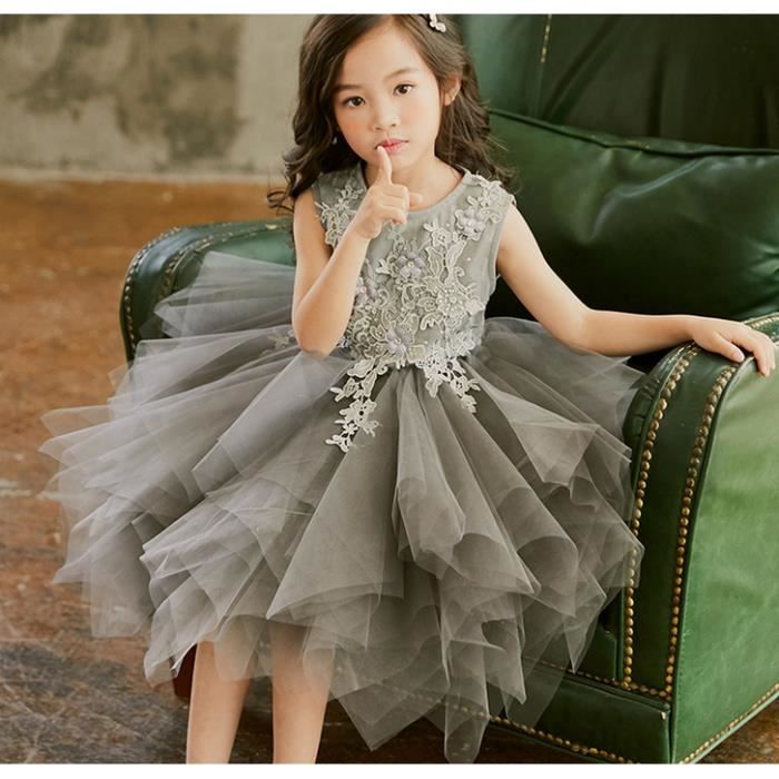 Robe De Demoiselle D Honneur Robe De Soiree Elegante Pour Enfants Gris Achat Vente Robe Cdiscount
