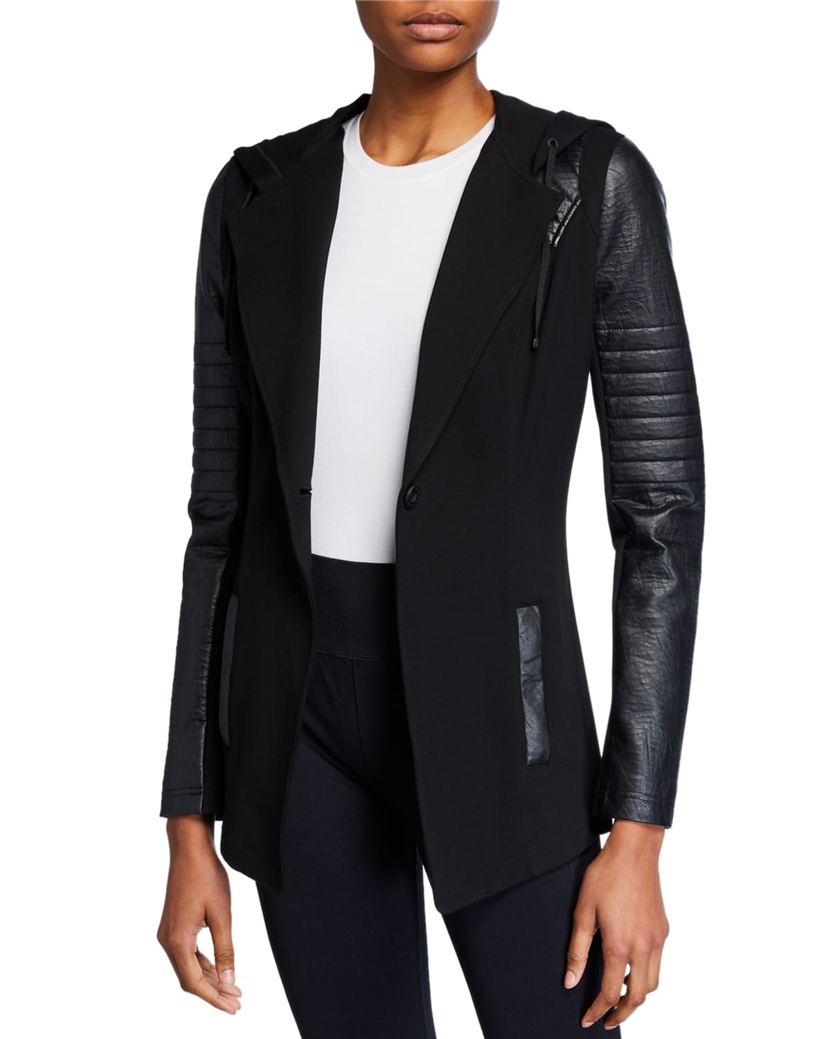 Blanc Noir Hooded Single Button Moto Blazer Neiman Marcus