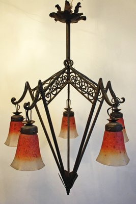 Lustre Art Deco En Fer Forge Et Verre France 19s En Vente Sur Pamono