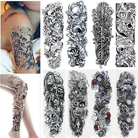 Amaza Tatouage Temporaire Noir Manchette Tattoo Body Sticker Tatouages Ephemeres Bras Pour Homme Femmes Mort Rose 8 Feuilles Amazon Fr Beaute Et Parfum