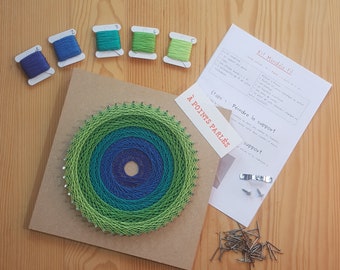 Mandala Kit String Art Mandala Fil Bleu Vert Tissage Rosace Diy Tuto Zen Un Grand Marche