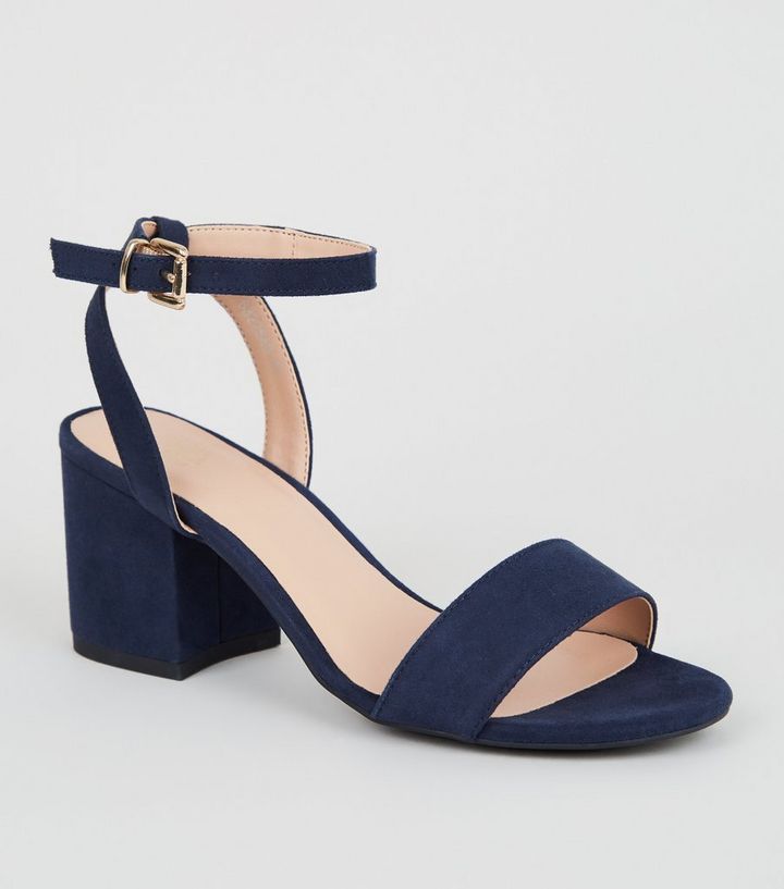 Sandales Bleu Marine En Suedine A Talons Blocs Et A Anneau New Look