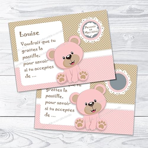 Carte A Gratter Personnalisee Marraine Bapteme Ours Rose Amazon Fr Handmade