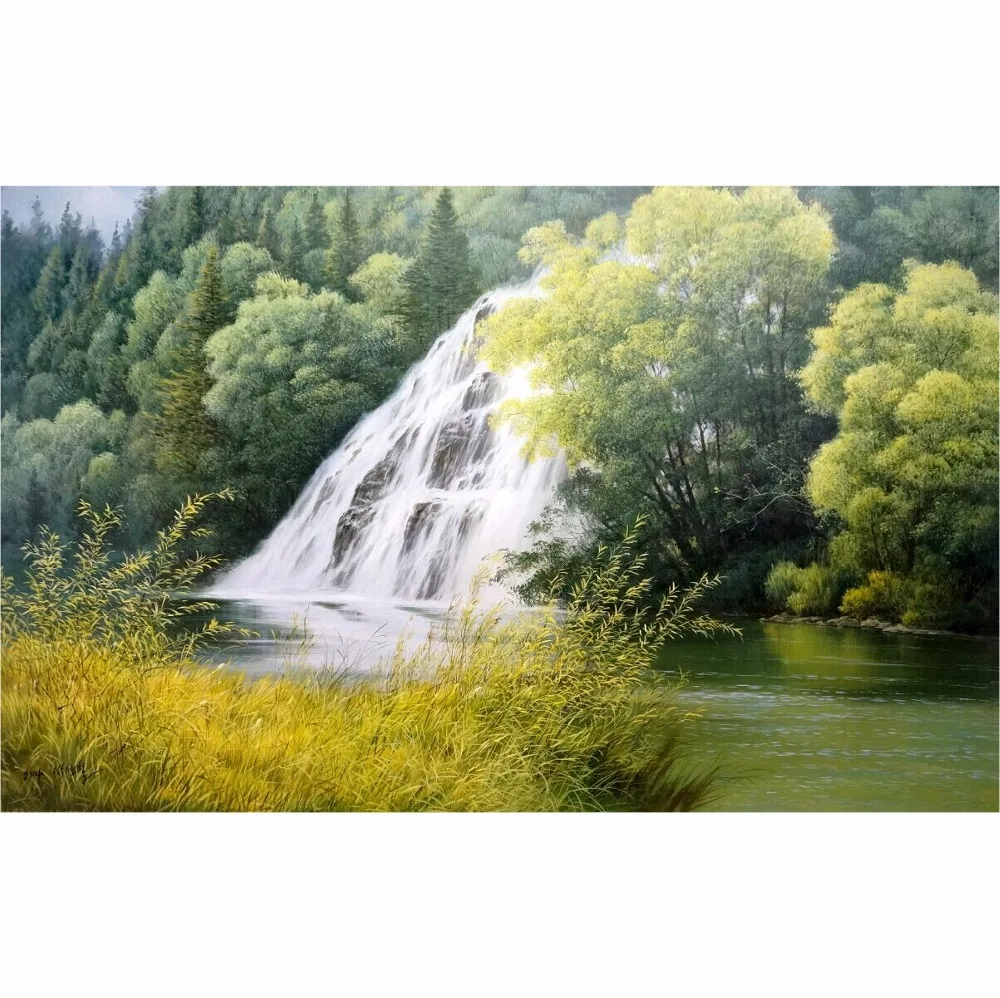 Haute Quailty Main Peint Cascade Paysage Realiste Peinture A L Huile Illustration Plat Toile Peinture A L Huile Decor A La Maison Cadeau Aliexpress