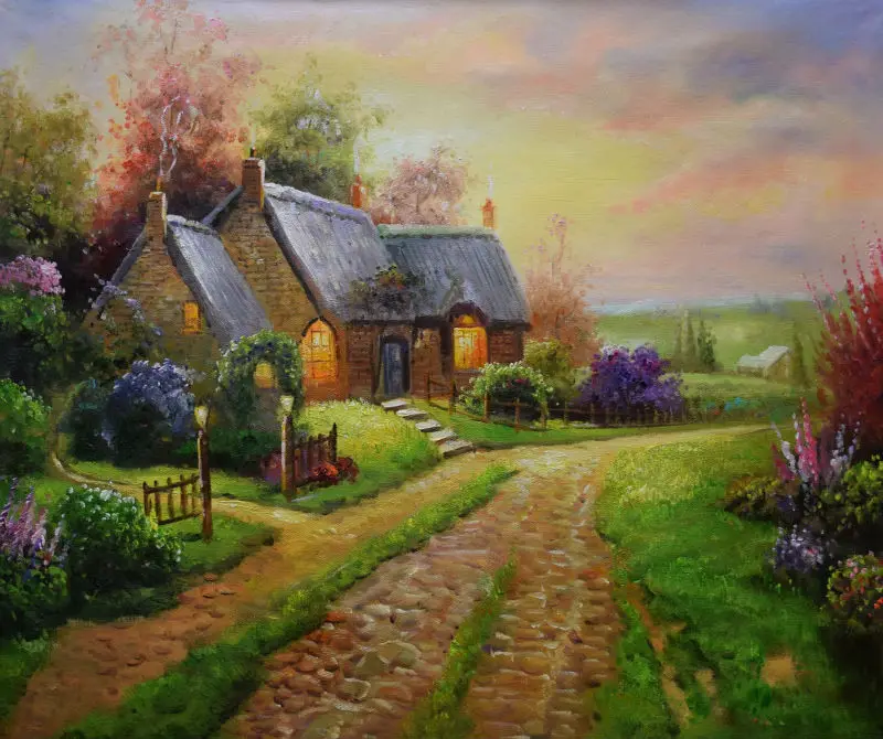 Peint A La Main De Style Europeen Peinture A L Huile Realiste Foret Maison Paysage Peinture A L Huile Mur Art Photo Peinture Pour Chambre Aliexpress