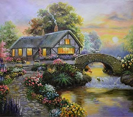 Yohawod Peint A La Main Style Europeen Huile Toile Realiste Foret Maison Paysage Peinture A L Huile Sur Toile Mur Art Photo Peinture Pour Chambre Amazon Fr Cuisine Maison