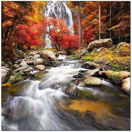 Cologo Realiste Paysage Naturel Peinture Impression Sur Toile Cascade Affiche Foret Paysage Mur Art Decor Image Pour Hotel Home Decoration 32x32 Pouce Sans Cadre Al014 Amazon Fr Cuisine Maison