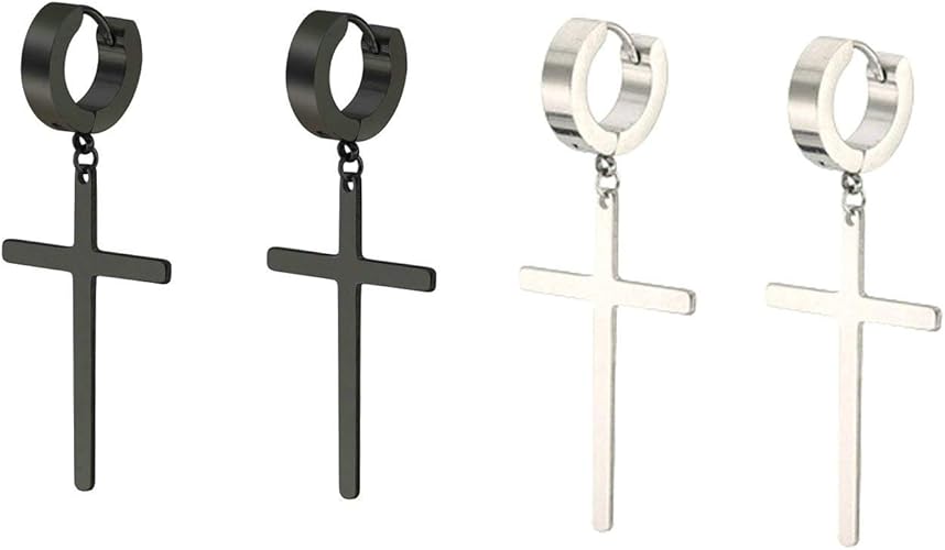 Beydodo Boucles D Oreilles Homme Acier Boucle D Oreille Homme Pendante 3 Paire 6 Pieces Boucle D Oreille Pendante Croix Amazon Fr Bijoux