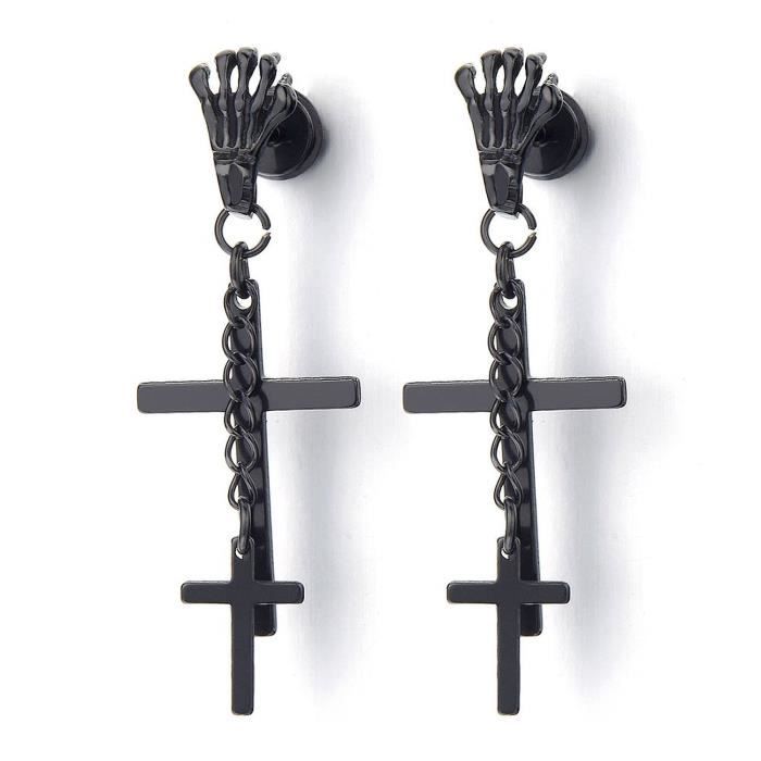 Paire Boucles D Oreilles Homme Acier Noire Croix Pendante Medievale Achat Vente Boucle D Oreille Paire Boucles D Oreilles Homme Soldes Sur Cdiscount Des Le Janvier
