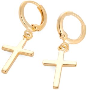 Bobijoo Jewelry Paire Boucles D Oreilles Homme Creoles Croix Catholique Acier Or 18 90