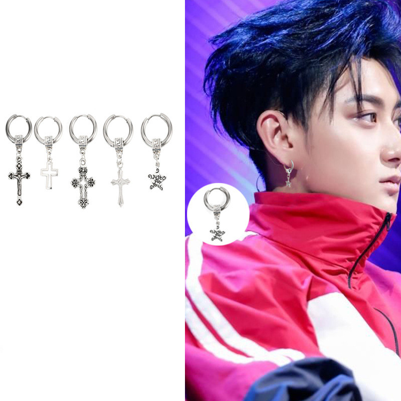Boucle D Oreille Homme Croix Noire Anneau D Oreille Acier Chirurgical Piercing Oreille Croix K Pop Aia Piercing Aia Piercing