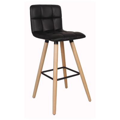 Ring Tabouret De Bar Noir Pied Bois Naturel
