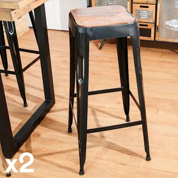 Tabouret De Bar Industriel Aldor Metal Bois Lot De 2