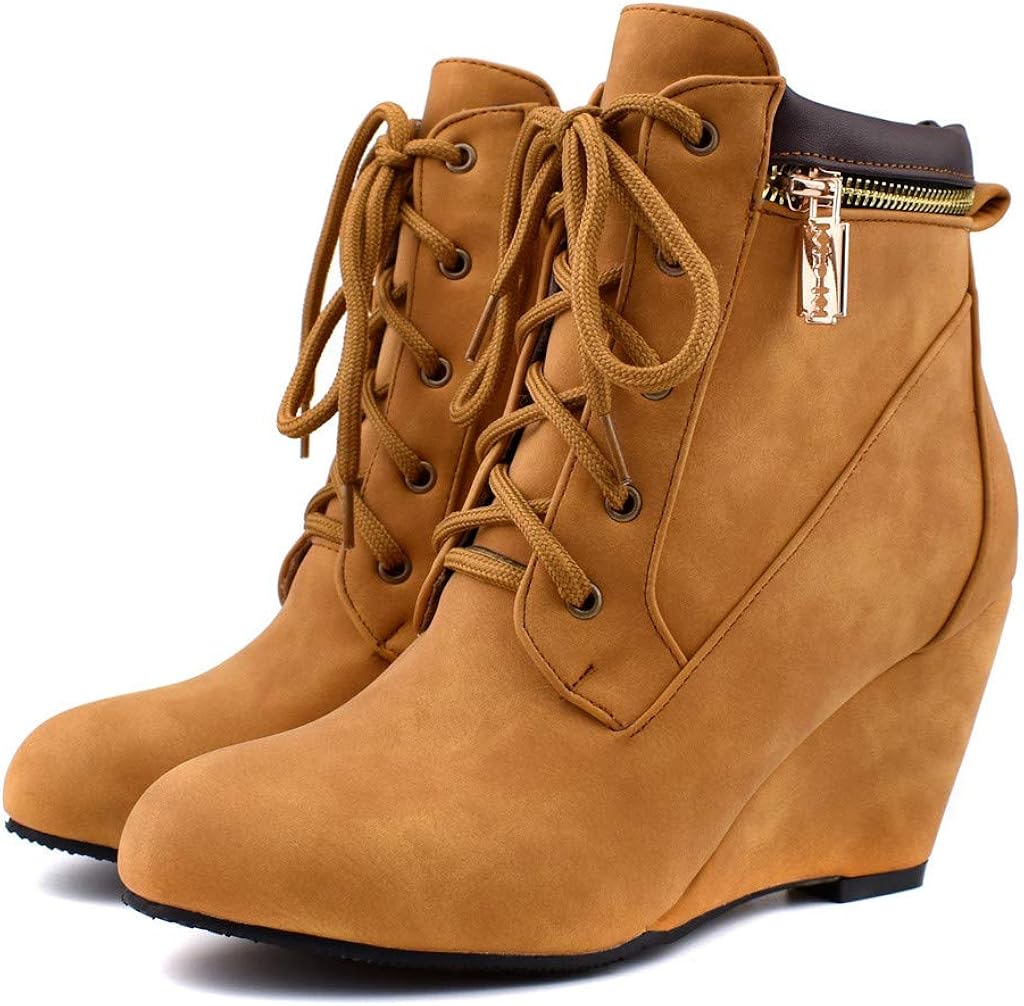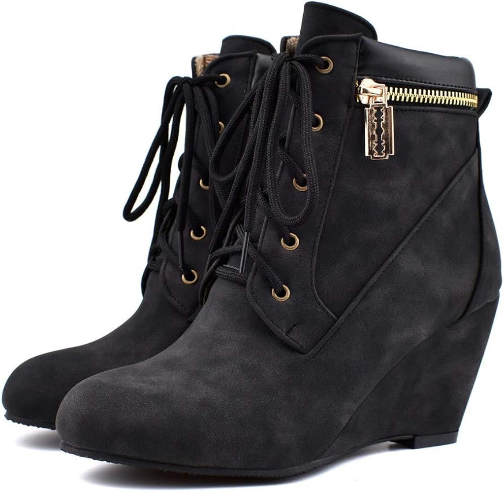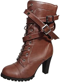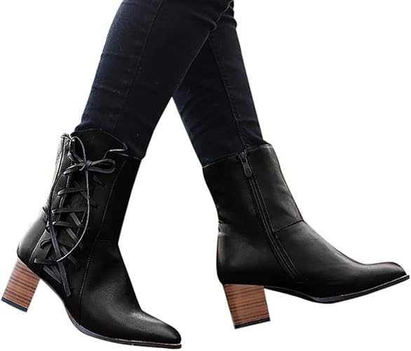 Mehouse Bottes Femme Talons Bottines Hiver Automne Style Vintage Martain Bottes Avec Talons De Mode A Lacets Bottines Femmes Chaussures Impermeables Sandales A Talons Hauts Sandales Chaussures Vetements