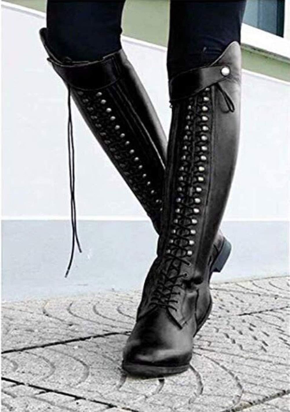 Long Boots Rivet Ribbon Women Fashion Boots New Fashion Bottes Femme Autumn And Winter Women S Riding Boots Vintage Retro Style Motorcycle Boots Women Shoes Damenschuhe Zapatos De Mujer Sapatos Femininos Scarpe Da Donna Damskor Chaussures Pour Femmes