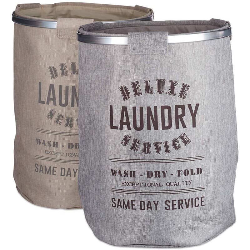 Panier A Linge Set De 2 Gris Beige En Tissu Sac A Linge Pliable Vintage Corbeille H X O 60 X 45 Cm 80 Litres Lin