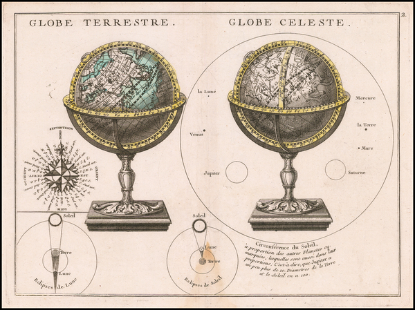 Globe Terrestre With Globe Celestre With Compass Rose C Barry Lawrence Ruderman Antique Maps Inc