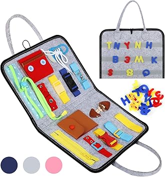 Lijumn Busy Board Jouets Montessori Enfants Tableau D Activite Bebe Jouets Educatifs Apprendre A S Habiller Les Competences De Base La Motricite Fine Jeux Sensoriels Precoces Amazon Fr Sports Et Loisirs